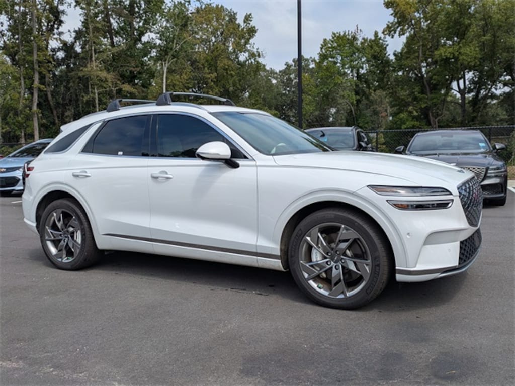 Certified. Uyuni White 2025 Genesis Electrified GV70 Prestige AWD 1-Speed Automatic Electric Motor HEATED SEATS, VENTILATED SEAT, LEATHER SEATING, BLUETOOTH, BACK-UP CAMERA, POWER DRIVER SEAT, ADAPTIVE CRUISE CONTROL, WELL MAINTAINED, ALL SERVICE DONE BY A CERTIFIED GENESIS TECHNICIAN, KEYLESS ENTRY, APPLE/ANDROID AUTO, FULLY SERVICED AND DETAILED, 12.3" 3D Digital Instrument Cluster, ABS brakes, Active Noise Control, Alloy wheels, Electronic Stability Control, Front dual zone A/C, Head-Up Display, Heated & Ventilated Front Bucket Seats, Heated 2nd Row Seats, Heated door mirrors, Heated front seats, Heated Steering Wheel, Illuminated entry, Leatherette Wrapped Upper Instrument Panel, Lexicon Premium Audio System, Low tire pressure warning, Manual Rear Door Shades, Microfiber Suede Headliner, Nappa Leather Seating Surfaces, Navigation System, Option Group 02, Power Liftgate, Power moonroof, Prestige Package, Remote keyless entry, Traction control, White Brake Calipers.