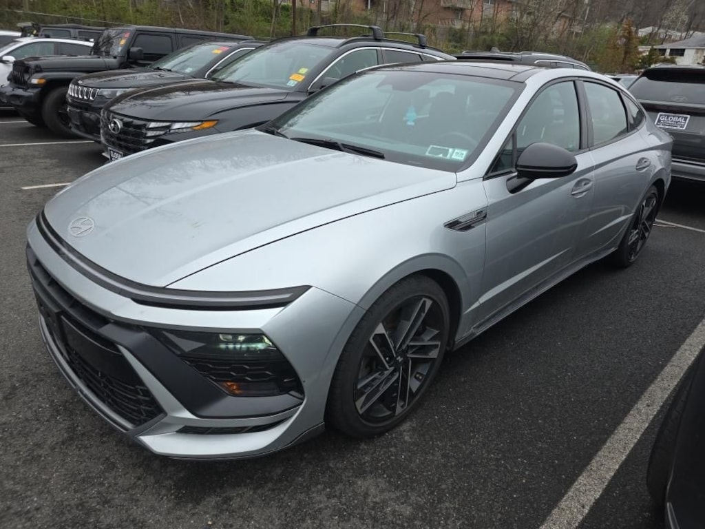 Certified. Aero Silver 2024 Hyundai Sonata N Line FWD 8-Speed I4 Black Artificial Leather, 12 Speakers, 4-Wheel Disc Brakes, ABS brakes, Apple CarPlay & Android Auto, Auto High-beam Headlights, Auto-dimming Rear-View mirror, Automatic temperature control, Brake assist, Delay-off headlights, Driver vanity mirror, Dual front impact airbags, Dual front side impact airbags, Electronic Stability Control, Exterior Parking Camera Rear, Four wheel independent suspension, Front anti-roll bar, Front Bucket Seats, Front dual zone A/C, Front reading lights, Fully automatic headlights, Heated door mirrors, Heated front seats, Illuminated entry, Knee airbag, Leather steering wheel, Low tire pressure warning, Navigation System, Occupant sensing airbag, Outside temperature display, Overhead airbag, Overhead console, Passenger door bin, Power moonroof, Rear anti-roll bar, Rear side impact airbag, Remote keyless entry, Speed-sensing steering, Speed-Sensitive Wipers, Split folding rear seat, Steering wheel mounted audio controls, Tachometer, Telescoping steering wheel, Tilt steering wheel, Traction control, Variably intermittent wipers, Wheels: N Line 19" x 8.0J Aluminum Alloy.