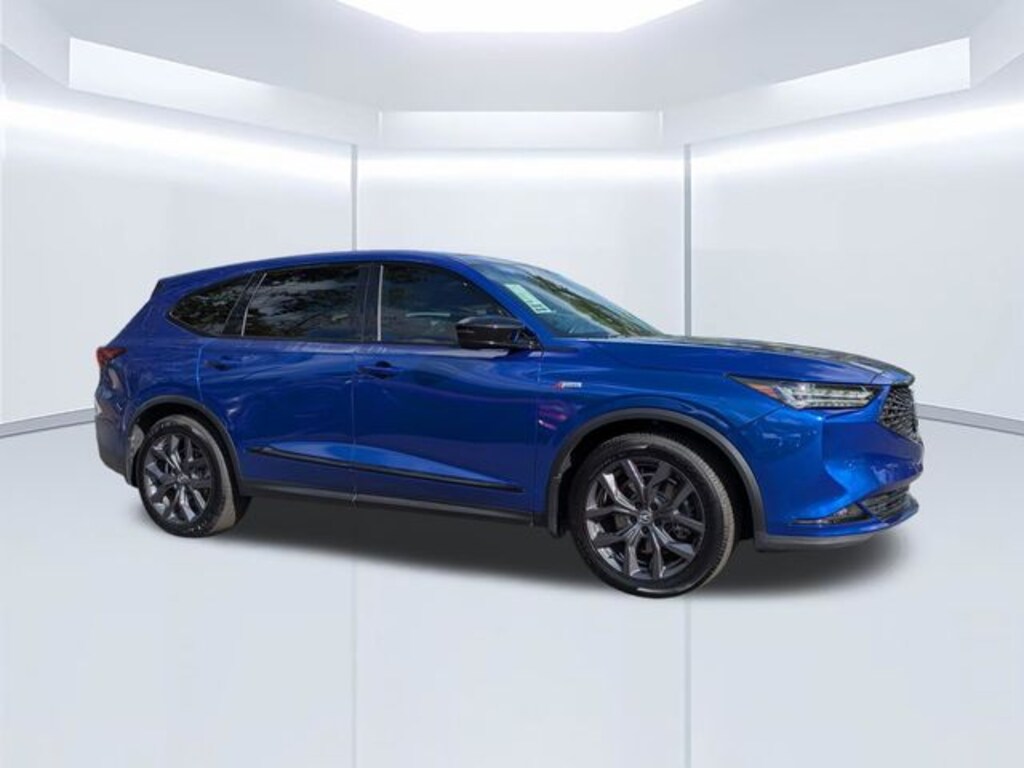 Apex Blue Pearl 2022 Acura MDX A-Spec SH-AWD AWD 10-Speed Automatic 3.5L V6 SOHC i-VTEC 24V Red w/Perforated Milano Leather & Ultrasuede, 16 Speakers, 3rd row seats: split-bench, 4-Wheel Disc Brakes, ABS brakes, Anti-whiplash front head restraints, Apple CarPlay/Android Auto, Auto High-beam Headlights, Auto tilt-away steering wheel, Automatic temperature control, Brake assist, Compass, Delay-off headlights, Dual front impact airbags, Dual front side impact airbags, Electronic Stability Control, Emergency communication system: AcuraLink, Exterior Parking Camera Rear, Four wheel independent suspension, Front anti-roll bar, Front Bucket Seats, Front Center Armrest, Front fog lights, Fully automatic headlights, Garage door transmitter: HomeLink, Heated & Ventilated A-Spec Front Sport Seats, Heated door mirrors, Heated front seats, Illuminated entry, Knee airbag, Lane departure: Lane Keeping Assist System (LKAS) active, Leather steering wheel, Low tire pressure warning, Navigation system: Acura Navigation System with 3D View, Occupant sensing airbag, Outside temperature display, Overhead airbag, Perforated Milano Leather & Ultrasuede, Power Liftgate, Power moonroof, Power passenger seat, Radio: ELS Studio 3D Premium Audio System, Rear air conditioning, Rear anti-roll bar, Remote keyless entry, Speed-sensing steering, Split folding rear seat, Sport steering wheel, Steering wheel memory, Steering wheel mounted audio controls, Tachometer, Telescoping steering wheel, Tilt steering wheel, Traction control, Turn signal indicator mirrors, Ventilated front seats, Wheels: 20" x 9" Aluminum Alloy.