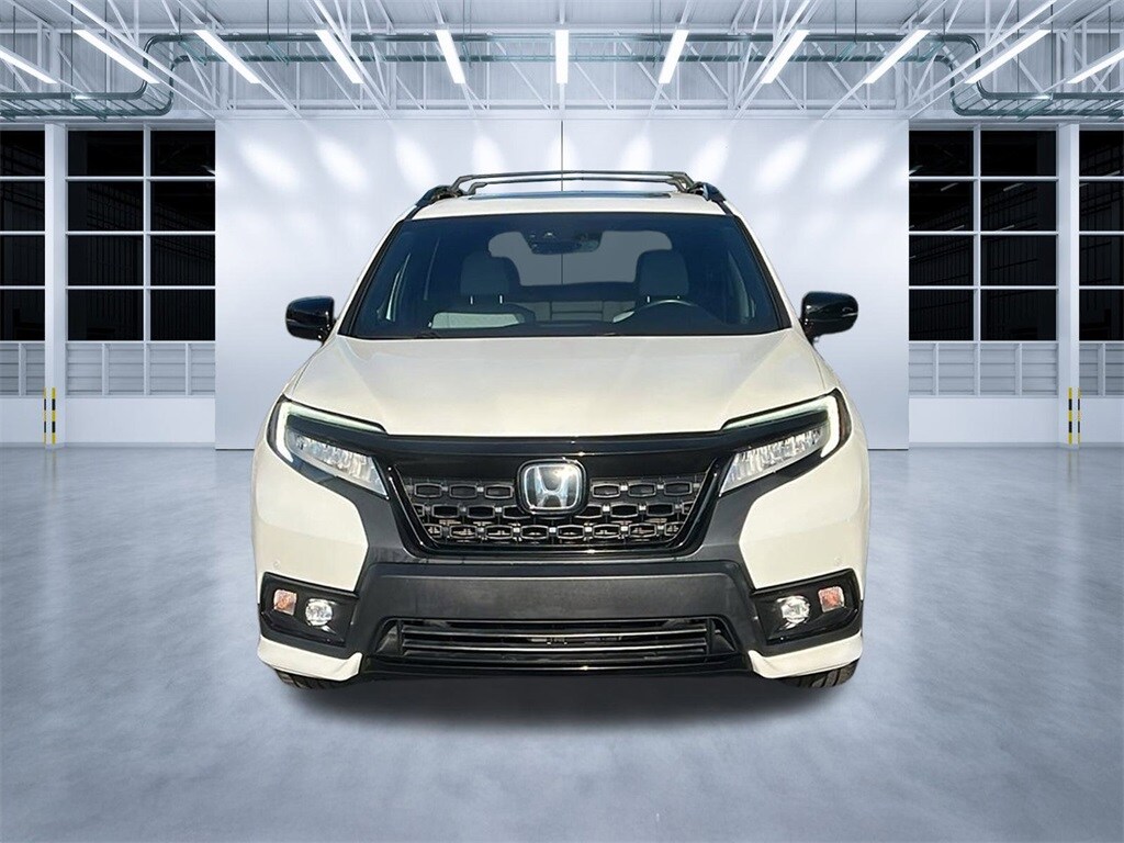2019 Honda Passport Elite AWD 9-Speed Automatic 3.5L V6 24V SOHC i-VTEC 10 Speakers, 4-Wheel Disc Brakes, 4.334 Axle Ratio, A/V remote: CabinControl, ABS brakes, Air Conditioning, Alloy wheels, AM/FM radio: SiriusXM, Apple CarPlay/Android Auto, Auto High-beam Headlights, Auto-dimming door mirrors, Auto-dimming Rear-View mirror, Automatic temperature control, Blind Spot Information (BSI) System warning, Brake assist, Bumpers: body-color, Compass, Delay-off headlights, Driver door bin, Driver vanity mirror, Driver's Seat Mounted Armrest, Dual front impact airbags, Dual front side impact airbags, Electronic Stability Control, Emergency communication system: HondaLink, Exterior Parking Camera Rear, Forward collision: Collision Mitigation Braking System (CMBS) + FCW mitigation, Four wheel independent suspension, Front anti-roll bar, Front Bucket Seats, Front Center Armrest, Front dual zone A/C, Front fog lights, Front reading lights, Fully automatic headlights, Garage door transmitter: HomeLink, Heated & Ventilated Front Bucket Seats, Heated door mirrors, Heated front seats, Heated rear seats, Heated steering wheel, Illuminated entry, Lane departure: Lane Keeping Assist System (LKAS) active, Low tire pressure warning, Memory seat, Navigation system: Honda Satellite-Linked Navigation System, Occupant sensing airbag, Outside temperature display, Overhead airbag, Overhead console, Panic alarm, Passenger door bin, Passenger seat mounted armrest, Passenger vanity mirror, Perforated Leather-Trimmed Seats, Power door mirrors, Power driver seat, Power Liftgate, Power moonroof, Power passenger seat, Power steering, Power windows, Radio data system, Radio: 540-Watt Premium Audio System w/10 Speakers, Rain sensing wipers, Rear air conditioning, Rear anti-roll bar, Rear reading lights, Rear seat center armrest, Rear window defroster, Rear window wiper, Remote keyless entry, Roof rack: rails only, Security system, Speed control, Speed-sensing steering, Split folding rear seat, Spoiler, Steering wheel mounted audio controls, Tachometer, Telescoping steering wheel, Tilt steering wheel, Traction control, Trip computer, Turn signal indicator mirrors, Variably intermittent wipers, Ventilated front seats, Wheels: 20" Solid-Spoke Gloss Black Alloy.