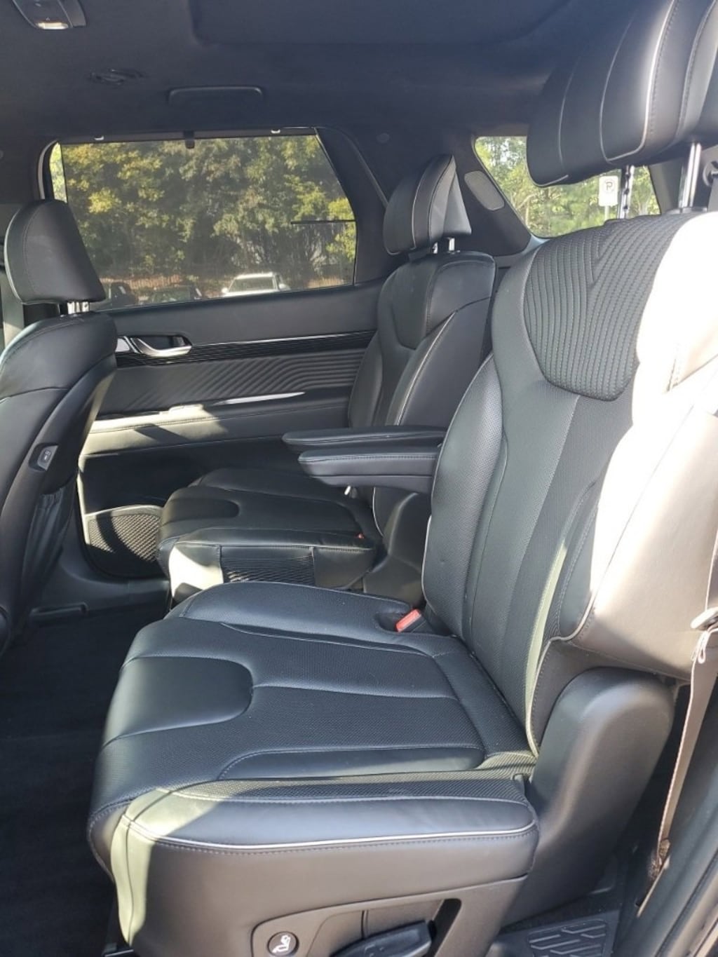 2023 Hyundai Palisade Calligraphy FWD 8-Speed Automatic with SHIFTRONIC V6 12 Speakers, 3.510 Axle Ratio, 3rd row seats: split-bench, 4-Wheel Disc Brakes, ABS brakes, Air Conditioning, Alloy wheels, AM/FM radio: SiriusXM, Apple CarPlay & Android Auto, Auto High-beam Headlights, Auto-dimming door mirrors, Auto-dimming Rear-View mirror, Auto-leveling suspension, Automatic temperature control, Brake assist, Bumpers: body-color, Cargo Blocks, Cargo Cover/Screen, Cargo Net, Cargo Package, Cargo Tray, Carpeted Floor Mats, Compass, Delay-off headlights, Driver door bin, Driver vanity mirror, Dual front impact airbags, Dual front side impact airbags, Electronic Stability Control, Emergency communication system: Blue Link Connected Car Service (3-year complimentary subscription), Exterior Parking Camera Rear, First Aid Kit, Four wheel independent suspension, Front anti-roll bar, Front Bucket Seats, Front Center Armrest, Front dual zone A/C, Front reading lights, Fully automatic headlights, Garage door transmitter: HomeLink, harman/kardon® Speakers, Heads-Up Display, Heated & Ventilated Front Bucket Seats, Heated door mirrors, Heated front seats, Heated rear seats, Heated steering wheel, Illuminated entry, Knee airbag, Low tire pressure warning, Memory seat, Navigation System, Occupant sensing airbag, Option Group 01, Outside temperature display, Overhead airbag, Overhead console, Panic alarm, Passenger door bin, Passenger vanity mirror, Power door mirrors, Power driver seat, Power Liftgate, Power moonroof, Power passenger seat, Power steering, Power windows, Premium Nappa Leather Seat Trim, Radio data system, Radio: AM/FM/MP3 Premium Audio System, Rain sensing wipers, Rear air conditioning, Rear anti-roll bar, Rear audio controls, Rear Bumper Applique, Rear reading lights, Rear side impact airbag, Rear window defroster, Rear window wiper, Reclining 3rd row seat, Remote keyless entry, Security system, Speed control, Speed-sensing steering, Split folding rear seat, Spoiler, Steering wheel mounted audio controls, Tachometer, Telescoping steering wheel, Tilt steering wheel, Traction control, Trip computer, Turn signal indicator mirrors, Variably intermittent wipers, Ventilated front seats, Ventilated rear seats, Wheel Locks, Wheels: 20" x 7.5J Calligraphy Exclusive Alloy.