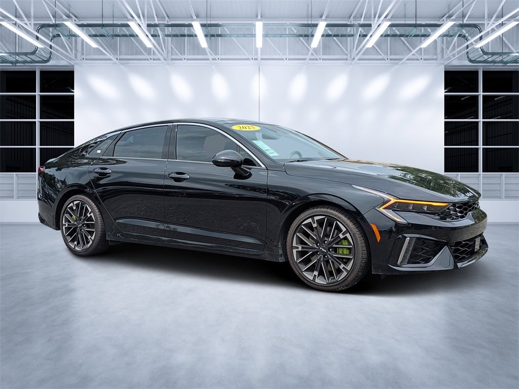 Aurora Black Pearl 2025 Kia K5 GT FWD 8-Speed DCT 2.5L I4 DGI Turbocharged DOHC 16V LEV3-ULEV70 290hp HEATED SEATS, REMAINDER OF FACTORY WARRANTY, WARRANTY AVAILABLE, WELL MAINTAINED, SERVICED, DETAILED AND READY FOR A NEW HOME!, BLIND SPOT, BLUETOOTH, MULTI FUNCTION STEERING WHEEL.