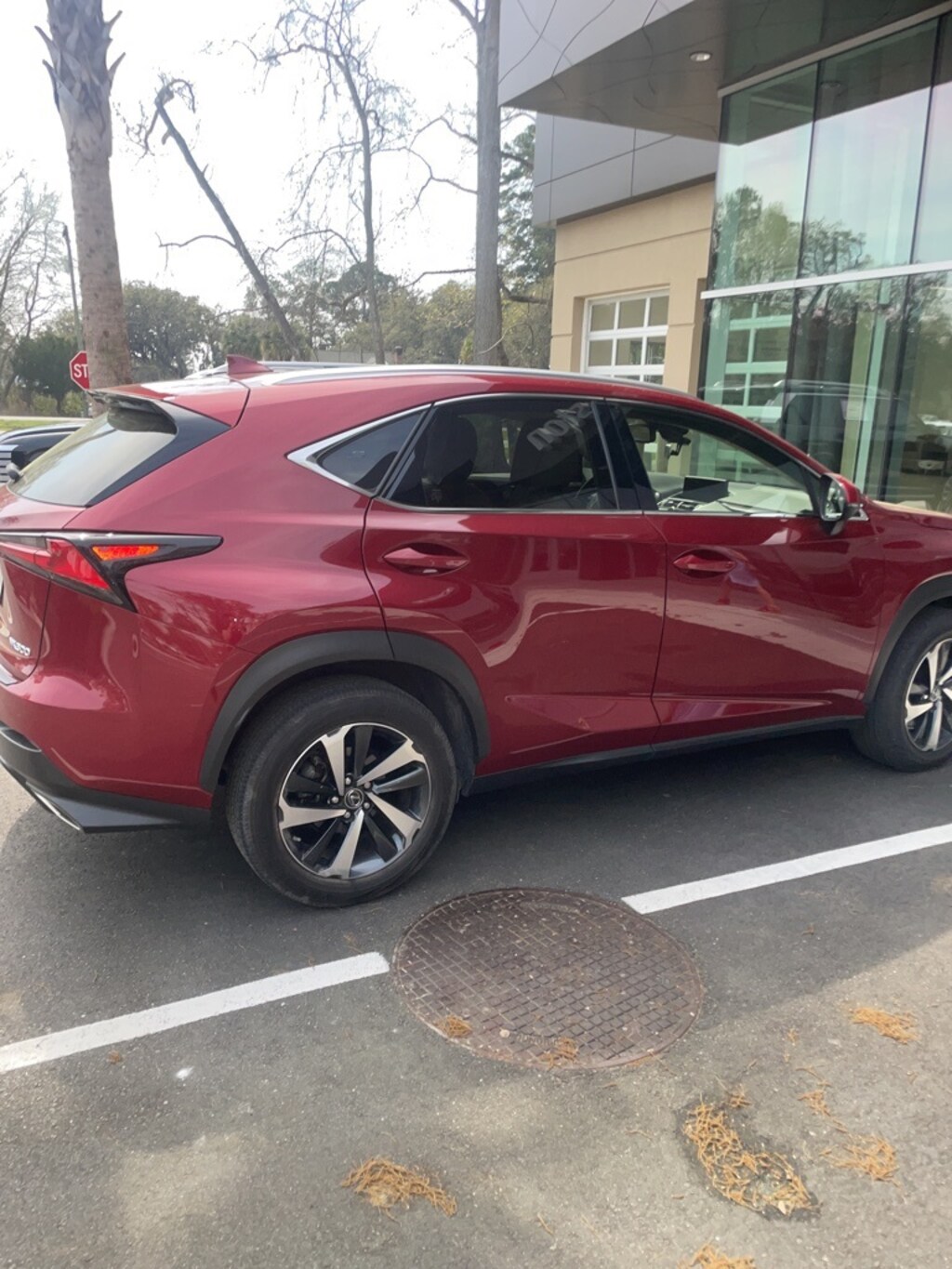 Matador Red Mica 2021 Lexus NX 300 Base FWD 6-Speed Automatic 2.0L 16V DOHC 10 Speakers, 4-Wheel Disc Brakes, ABS brakes, All-Weather Floor Liners w/Cargo Mat (PPO), Alloy wheels, Apple CarPlay/Android Auto, Auto High-beam Headlights, Automatic temperature control, Body Side Molding (PPO), Brake assist, Delay-off headlights, Door Edge Film by 3M (PPO), Door Edge Guards (PPO), Driver's Seat Memory, Dual front impact airbags, Dual front side impact airbags, Electrochromic Rear-View Mirror, Electronic Stability Control, Emergency communication system: Enform Safety Connect (complimentary 3-year subscription), Exterior Parking Camera Rear, Four wheel independent suspension, Front anti-roll bar, Front Bucket Seats, Front Center Armrest, Front dual zone A/C, Front fog lights, Fully automatic headlights, Heated & Ventilated Front Seats, High Clearance Lamp, HomeLink, Illuminated Door Sills (PPO), Illuminated entry, Knee airbag, Leather Shift Knob, Lexus Enform Destination Assist, Lexus Enform Wi-Fi, Low tire pressure warning, Mudguards (PPO), Navigation System, NuLuxe Seat Trim, Occupant sensing airbag, Outside temperature display, Overhead airbag, Package Accessory (P1) (PPO), Package Accessory (P2) (PPO), Power passenger seat, Power Tilt & Slide Moonroof/Sunroof, Premium Package, Rear anti-roll bar, Remote keyless entry, Speed-sensing steering, Split folding rear seat, Steering wheel mounted audio controls, Tachometer, Telescoping steering wheel, Tilt steering wheel, Traction control, Wheels: 18" x 7.5" 5-Spoke Alloy.