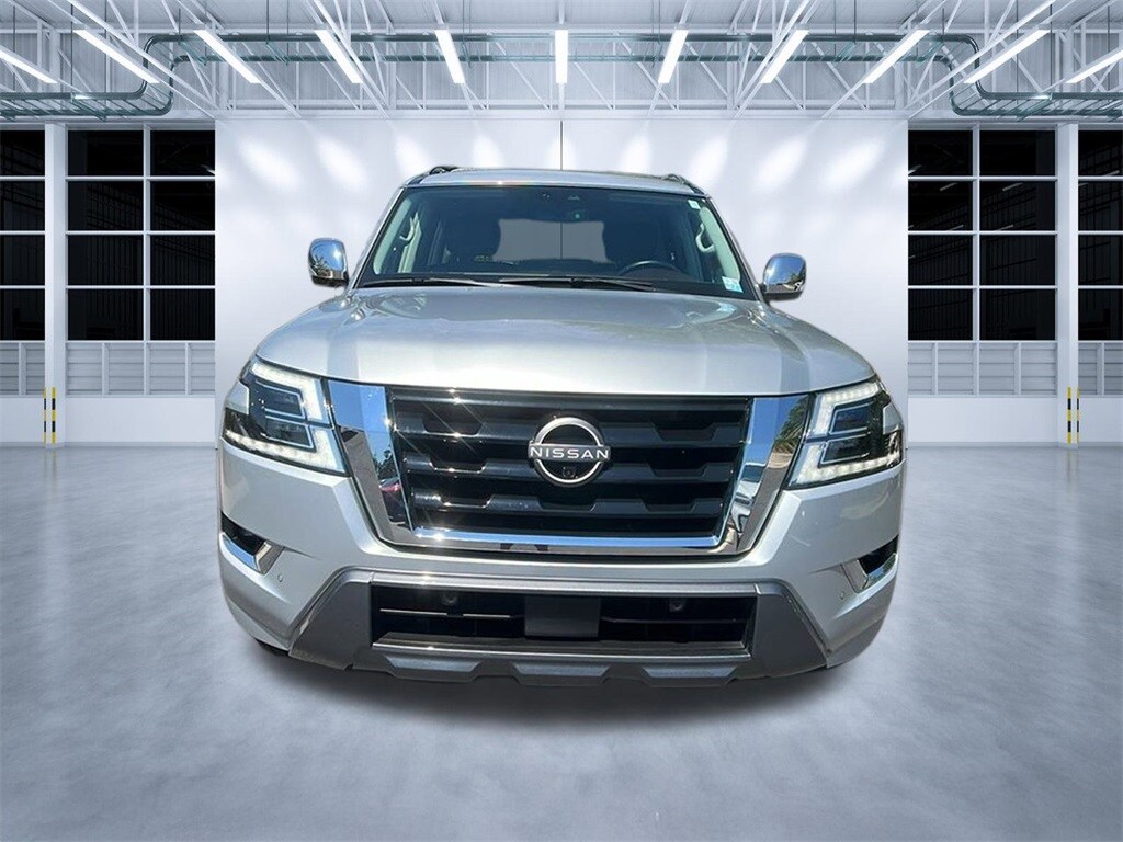 2021 Nissan Armada Platinum 4WD 7-Speed Automatic 5.6L V8 DOHC 32V LEV3-ULEV125 400hp 4WD, 13 Speakers, 2.94 Axle Ratio, 2nd Row Captain's Chairs, 2nd Row Center Console w/Padded Armrest, 3rd Row Carpeted Floor Mats - Captain Seat, 3rd row seats: split-bench, 4-Wheel Disc Brakes, A/V remote, ABS brakes, Air Conditioning, Alloy wheels, AM/FM radio: SiriusXM, Anti-whiplash front head restraints, Auto High-beam Headlights, Auto tilt-away steering wheel, Auto-dimming door mirrors, Auto-dimming Rear-View mirror, Auto-leveling suspension, Automatic temperature control, Brake assist, Bumpers: body-color, Captain's Chairs Package, Climate-Controlled Front Bucket Seats, Cross Bars, Delay-off headlights, Driver door bin, Driver vanity mirror, Dual front impact airbags, Dual front side impact airbags, Electronic Stability Control, Emergency communication system: NissanConnect Services, Exterior Parking Camera Rear, Four wheel independent suspension, Front anti-roll bar, Front Bucket Seats, Front Center Armrest, Front dual zone A/C, Front fog lights, Front reading lights, Fully automatic headlights, Garage door transmitter: HomeLink, Headphones, Heated door mirrors, Heated front seats, Heated rear seats, Heated steering wheel, Illuminated entry, Illuminated Kick Plates, Illuminated Scuff Plate, Leather Shift Knob, Low tire pressure warning, Memory seat, Navigation System, NissanConnect featuring Apple CarPlay and Android Auto, Occupant sensing airbag, Outside temperature display, Overhead airbag, Overhead console, Panic alarm, Passenger door bin, Passenger vanity mirror, Power door mirrors, Power driver seat, Power Liftgate, Power moonroof, Power passenger seat, Power steering, Power windows, Quilted Leather Seat Trim, Radio: NissanConnect w/SiriusXM, Rain sensing wipers, Rear air conditioning, Rear anti-roll bar, Rear reading lights, Rear seat center armrest, Rear window defroster, Rear window wiper, Reclining 3rd row seat, Remote keyless entry, Security system, Speed control, Speed-sensing steering, Speed-Sensitive Wipers, Split folding rear seat, Spoiler, Steering wheel memory, Steering wheel mounted audio controls, Tachometer, Telescoping steering wheel, Tilt steering wheel, Traction control, Trip computer, Turn signal indicator mirrors, Variably intermittent wipers, Ventilated front seats, Voltmeter, Welcome Lighting, Wheels: 22" Machine-Faced w/Tinted Clear Coat, 4WD.